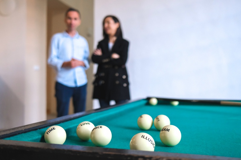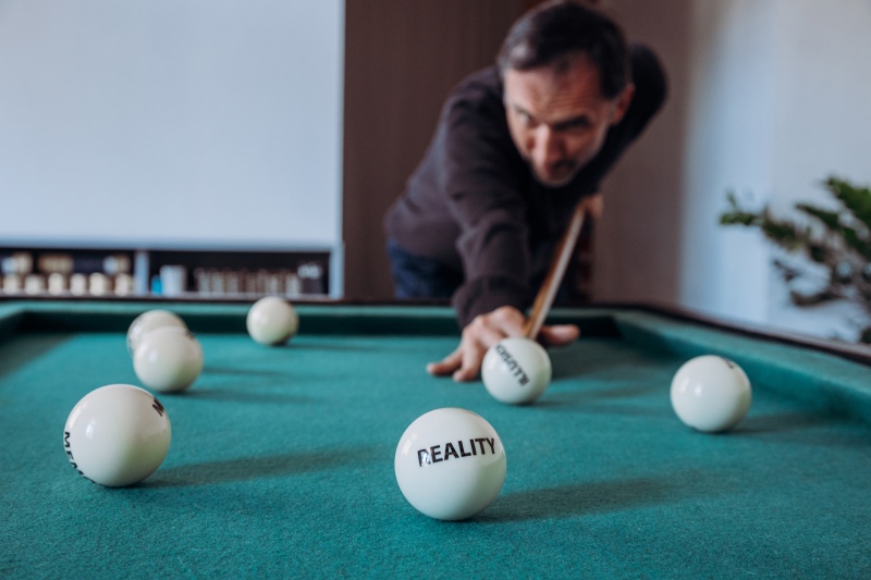 The essence of Stano Masár’s interactive game consists in an idea of individual action and responsibility. Every shot at the billiard balls introduces a unique series of relationships, meanings and constellations. Love, time, illusion and reality play together. Masár’s game, however, has neither winner nor conclusion. The subjective situation thus changes and becomes universal, or indeed philosophical. Both these artistic approaches, together with other works, call us to become more sensitive and empathetic, and to reflect on the values of contemporary existence.